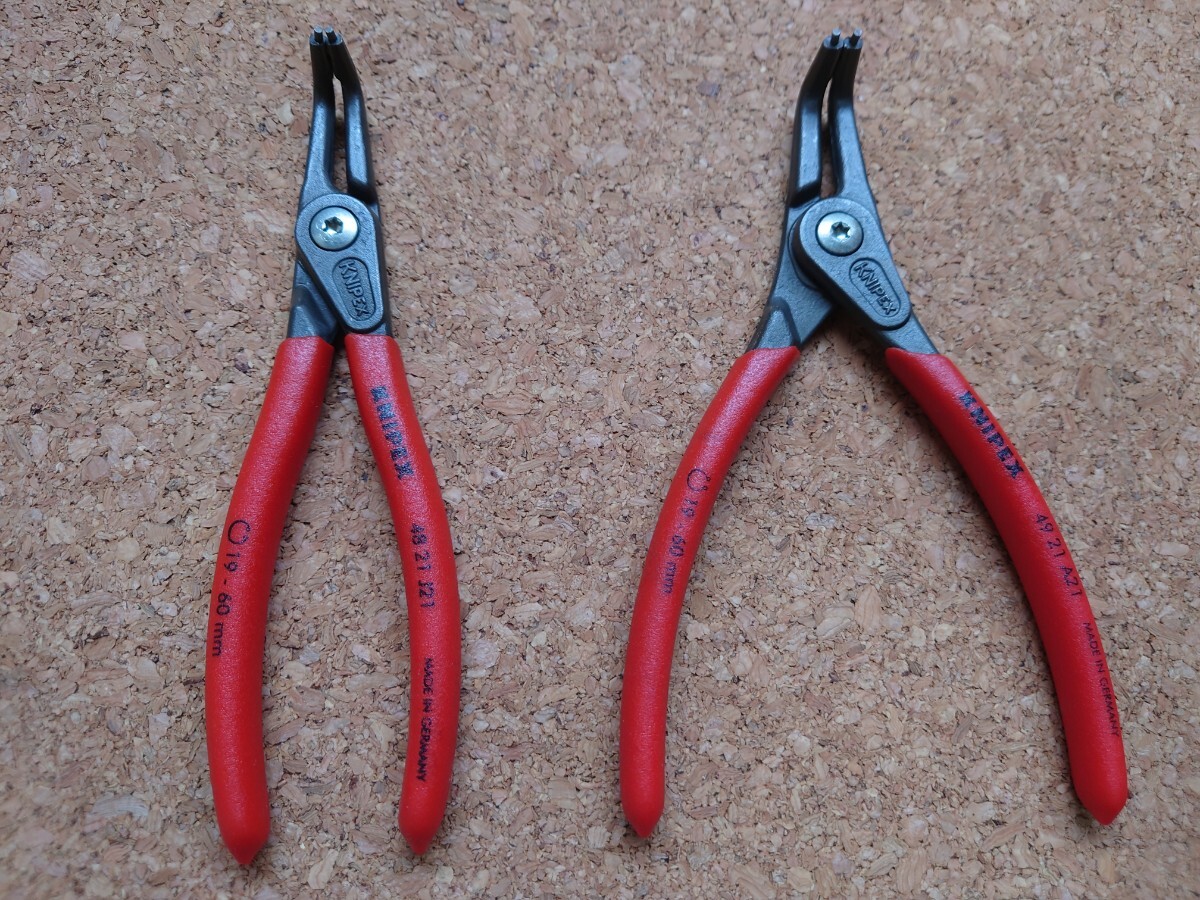> KNIPEX 48 21 J21(穴用) 49 21 A21(軸用) 精密スナップリングプライヤー 2本セット 比較的良好 90°ベントタイプ 19-60mm クニペックス