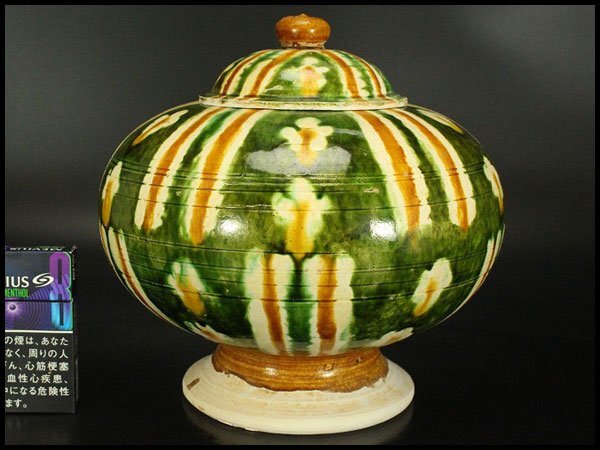 - 【銀閣】中国美術 唐三彩 蓋 丸壷 φ22cm 旧家蔵出 送料無料(A368)