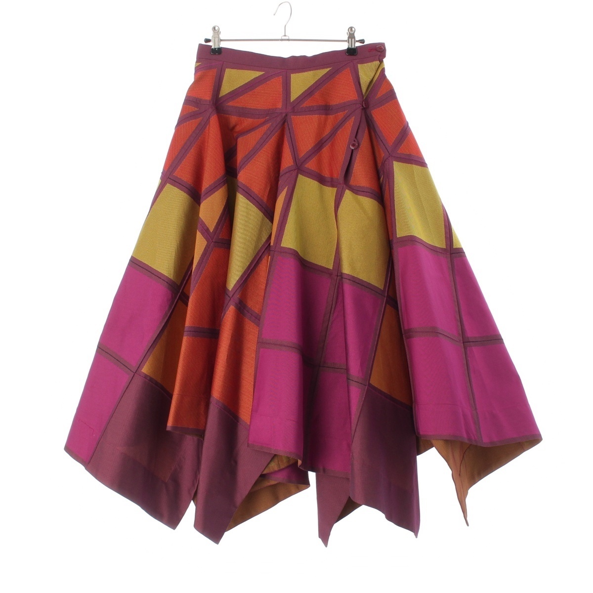 - イッセイミヤケ 15AW スチーム ストレッチ フレア スカート IM54FG517 ピンク×ゴールド マルチカラー 2【中古】