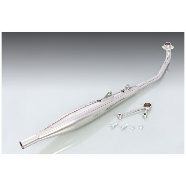 昔のカブのマフラーをイメージさせる柔らかな曲面スタイルのプレス成型モナカタイプマフラーです。