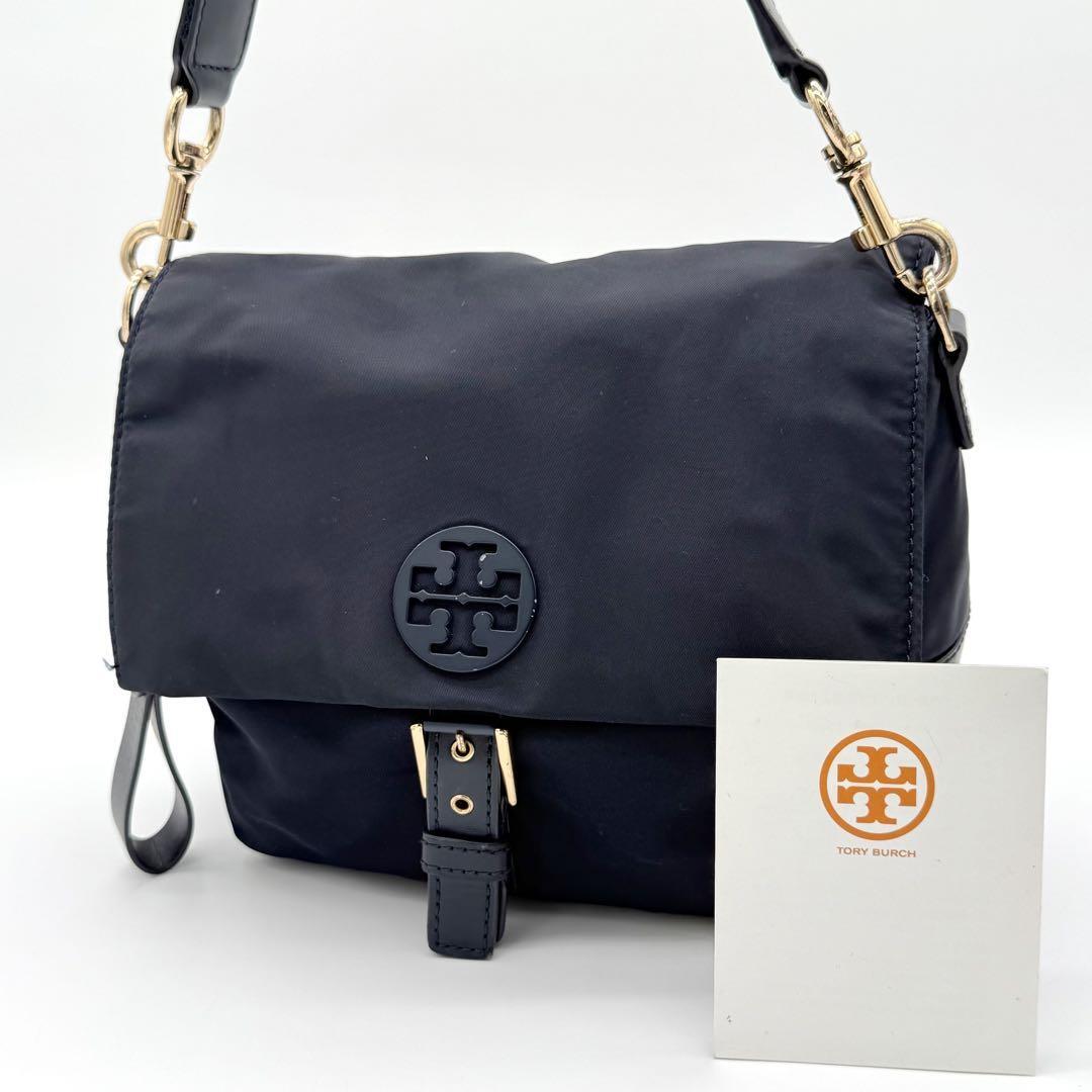 - 【美品】Tory Burch トリーバーチ ティルダ ショルダーバッグ 斜めがけ クロスボディ マグネット ナイロン レディース ネイビー CC001017