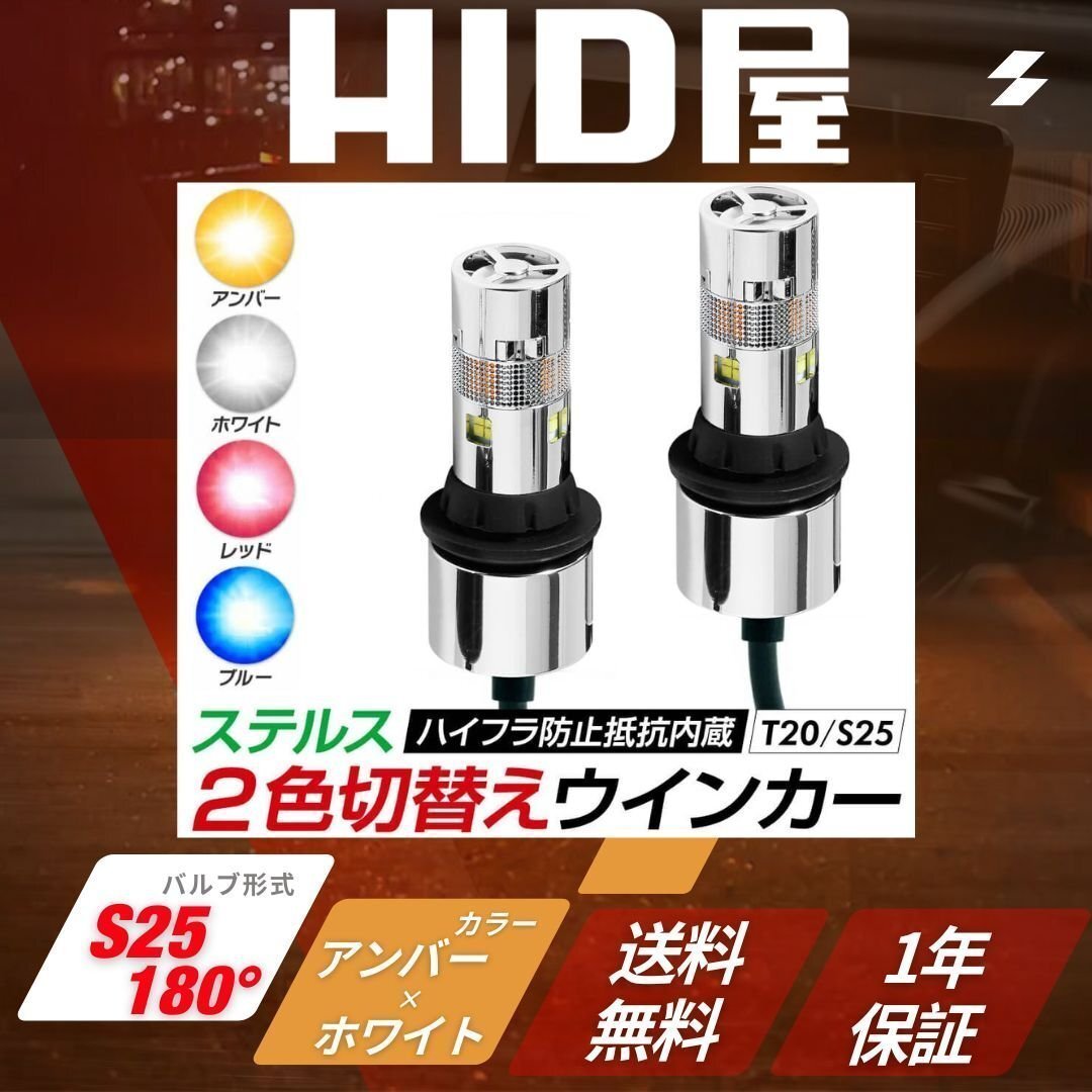- 【2色切替ウインカー】HID屋【送料無料】LED ステルス ウインカー S25 180°/アンバー×ホワイト ハイフラ抵抗内蔵 デイライト 安心保証