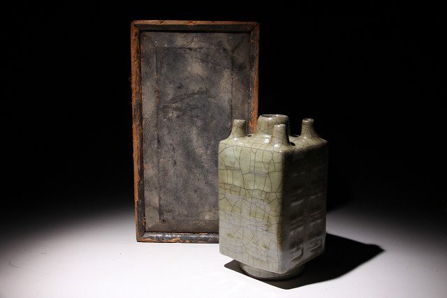 - ☆撫子☆官窯琮式瓶 五管瓶 高さ約20.5cm (検)琮形瓶 青磁 氷裂紋 花瓶 花入 唐物 中国美術 古玩