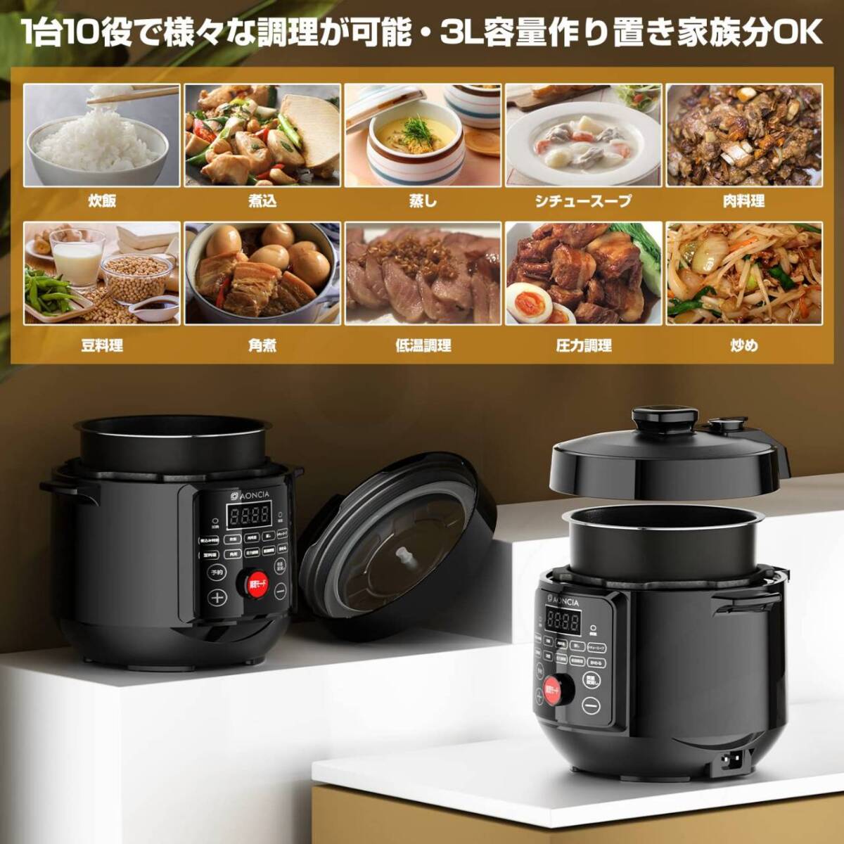 - 3L電気圧力鍋 10役 時短調理 ブラック