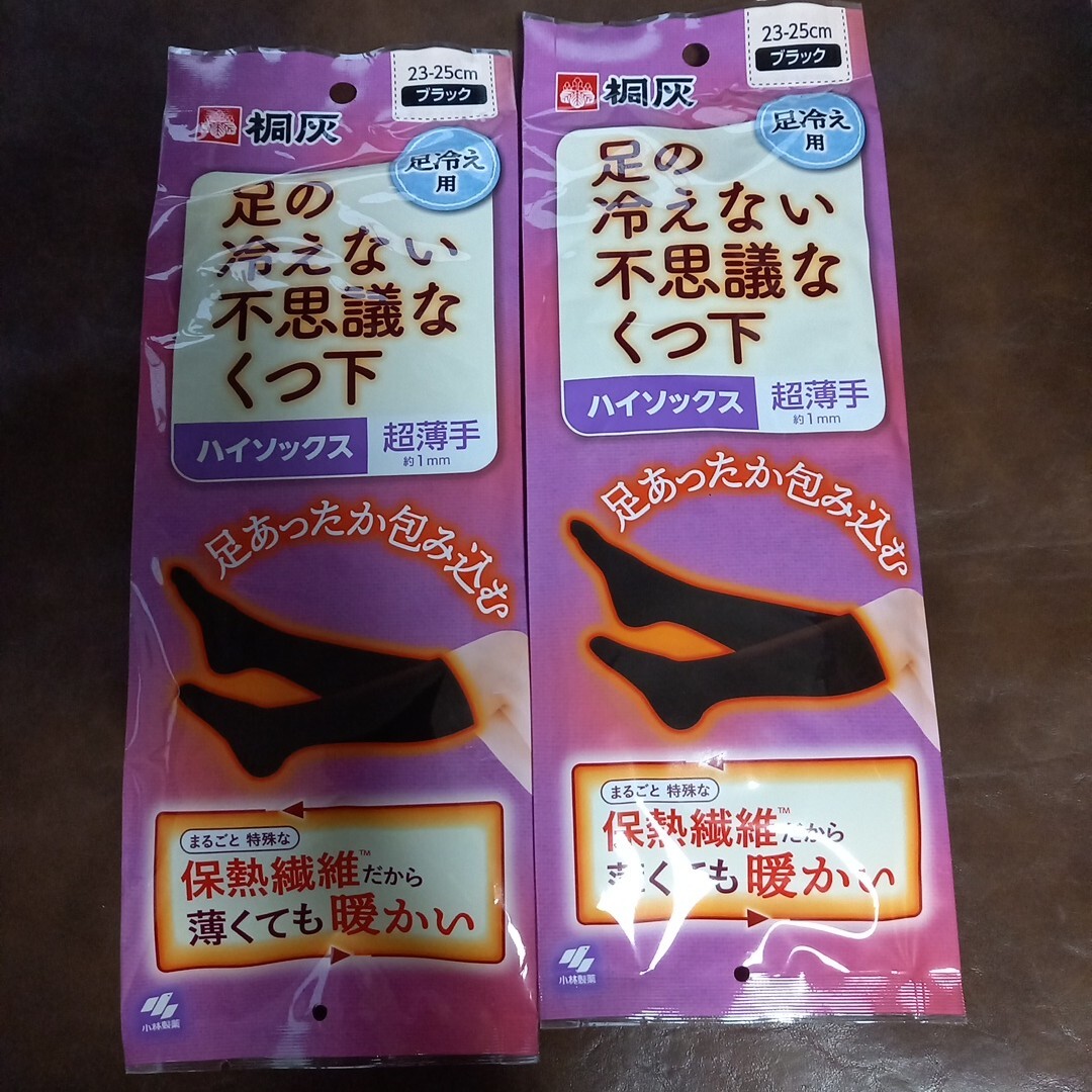 - 新品未開封 送料無料 足冷え用 足の冷えない不思議なくつ下 ハイソックス ブラック サイズ23~25センチ 超薄手約1ミリ ×2袋セット