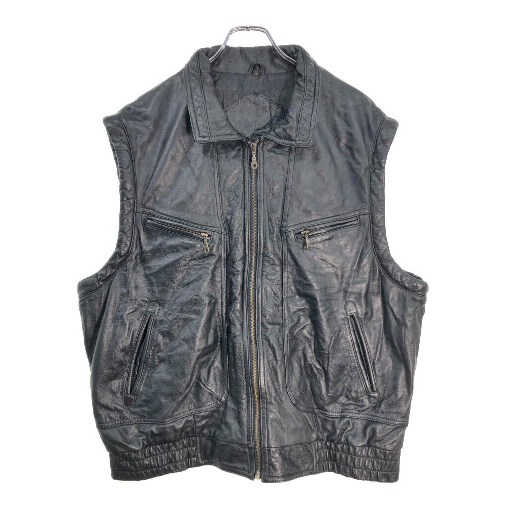 - PRIME LEATHER レザーベスト ブラック(メンズ 58)中古 古着 V5401