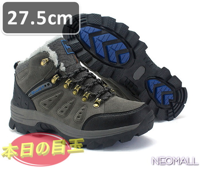 > メンズ トレッキングシューズ グレー 27.5cm【861】ハイカット ハイキングシューズ 中綿 防滑 耐磨耗 衝撃吸収 レディース 男女兼用