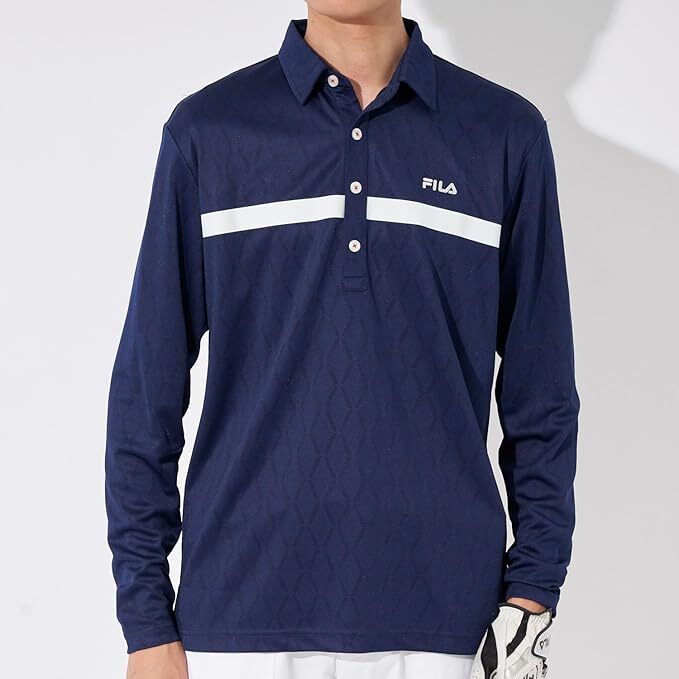 - 新品 フィラ ゴルフ 格子柄 長袖シャツ LLサイズ 紺 ネイビー 783-503 吸汗速乾 UVカット 税込9,790円 783503 ゴルフシャツ ゴルフウェア