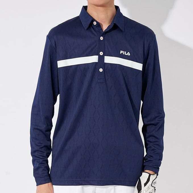 - 新品 フィラ ゴルフ 格子柄 長袖シャツ Lサイズ 紺 ネイビー 783-503 吸汗速乾 UVカット 税込9,790円 783503 ゴルフシャツ ゴルフウェア