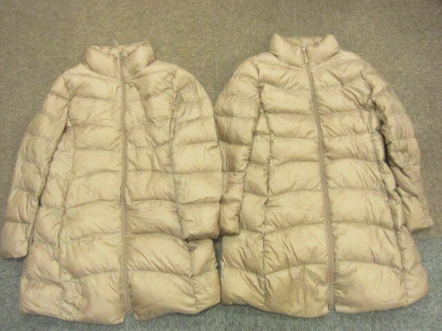 - ユニクロ ウルトラライトダウンコート 2枚セット SIZE XL LL ベージュ系 軽量ダウンジャンパー ロングダウンジャケット 保温防寒11009