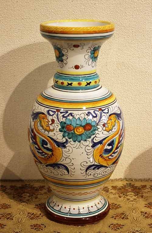 - イタリア製 輸入雑貨 花瓶 マヨルカ焼き デルータ Deruta ドラゴン リビングスタジオ 直輸入 フラワーベース 陶器 Sberna 794-37 送料無料