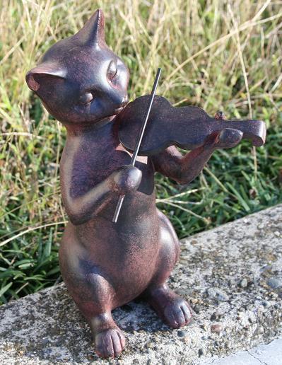 |  |  | ブロンズ風仕上げの可愛いネコの置物です。優雅な表情でバイオリンを弾いています。 |