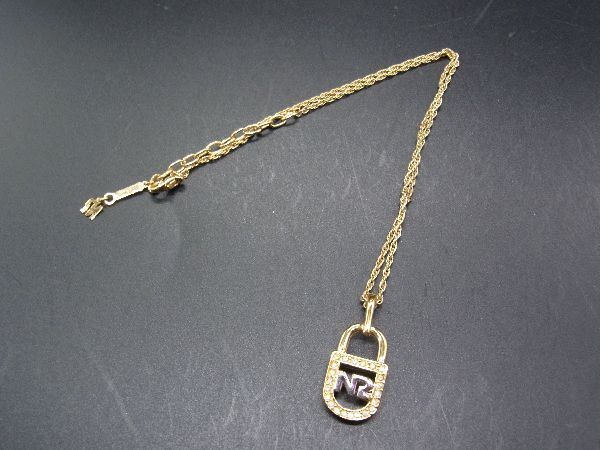 > ■美品■ NINA RICCI ニナリッチ ラインストーン ネックレス ペンダント アクセサリー ゴールド系 DE1747