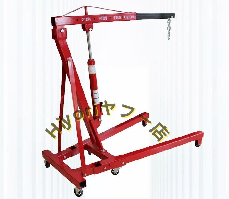 - 油圧式 エンジン クレーン 2t 折りたたみ 手動 吊り下げ 吊り上げ キャスター 自動車 脱着 工場 倉庫 整備 作業 工具