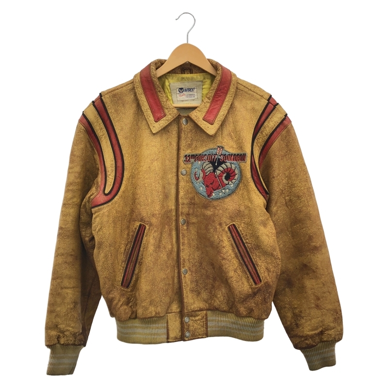 - 【中古】AVIREX VARSITY USA レザースタジャン S ブラウン アヴィレックス[240010482743]