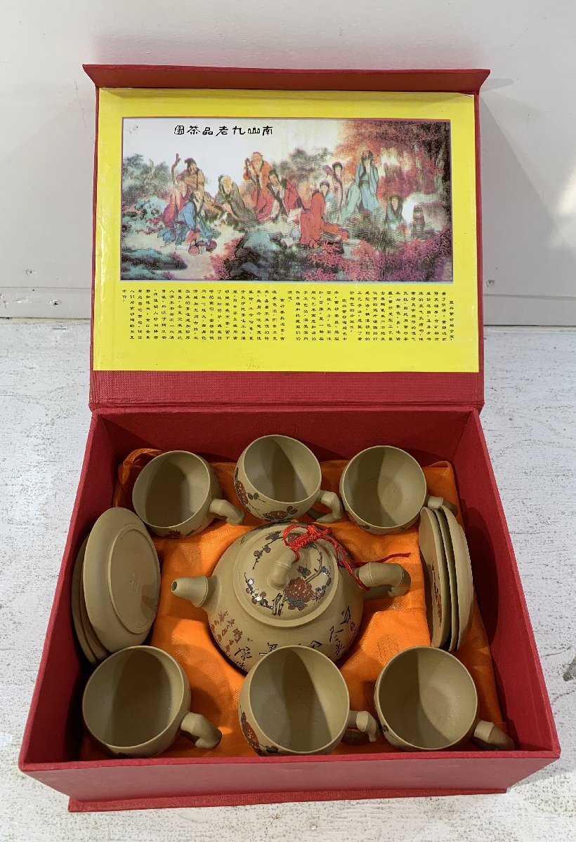 【紫波68-2-0918】【現状品/80】中国茶器セット 急須/カップ&ソーサー6個 陶器製