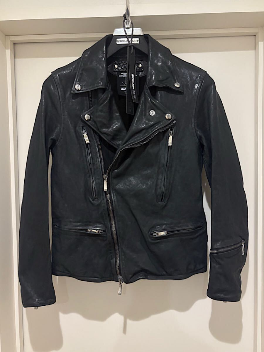 - 新品即決★バックラッシュTHE LINE定価58万円イタリーカーフ製品染めダブルライダース青黒