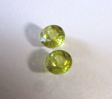 イエローのスフェーンの1ペアです。赤やグリーンのファイアーがキラキラしています。透明感とテリがあります。非加熱。