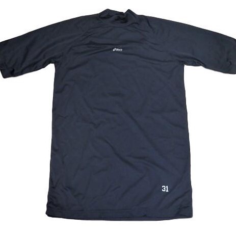 商品説明イチロー選手がNYヤンキースに移籍した2012年の公式戦で着用していたアシックス社製アンダーシャツです。画像の通り、向かって右下の裾の部分にイチロー選手の背番号31が刺繍されています。