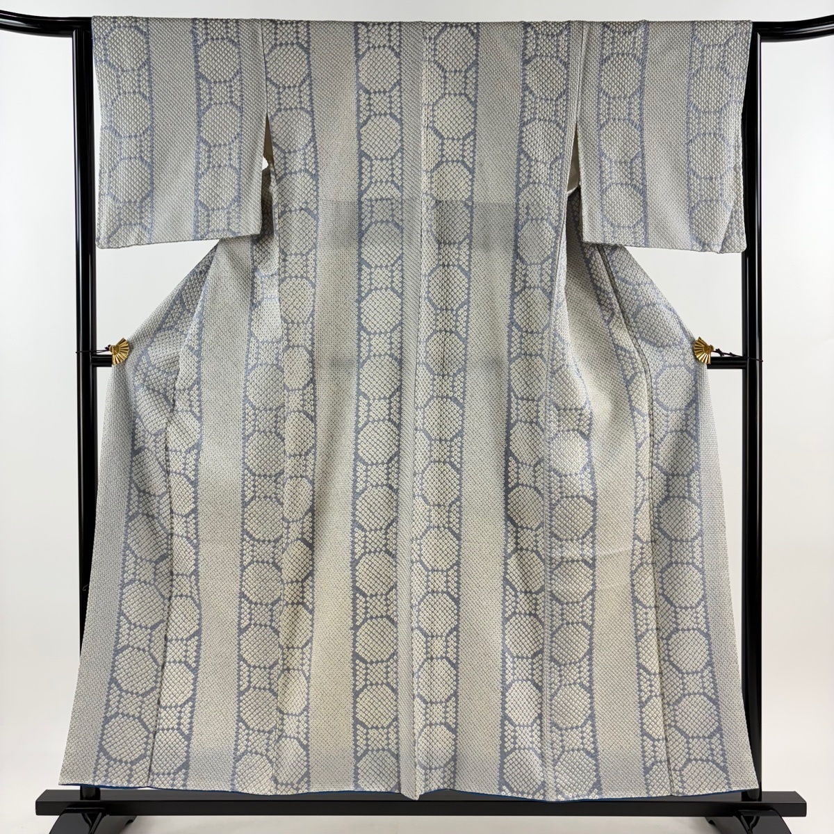 - 小紋 身丈156cm 裄丈64.5cm M 袷 幾何学 総絞り 青灰色 正絹 秀品 【中古】
