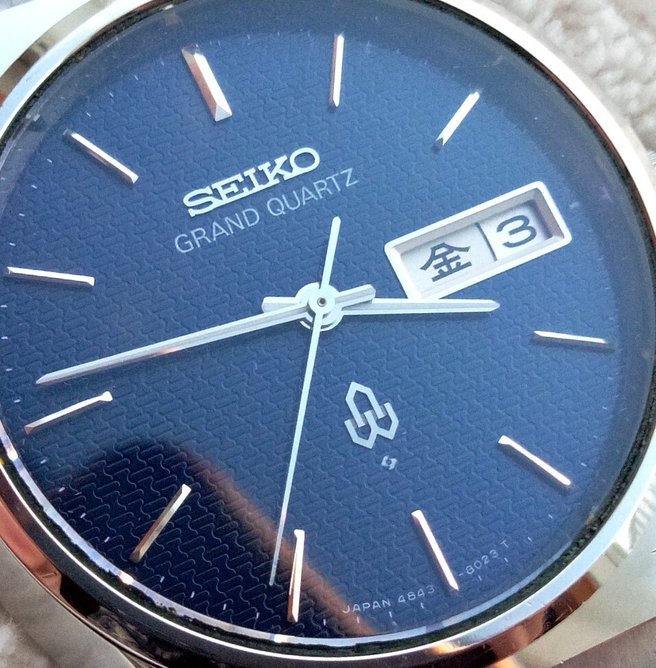 - セイコー SEIKO GRAND QUARTZ 48グランドクオーツデイデイト SEIKO純正GQオリジナルブレス ネイビー文字盤 メンズ腕時計