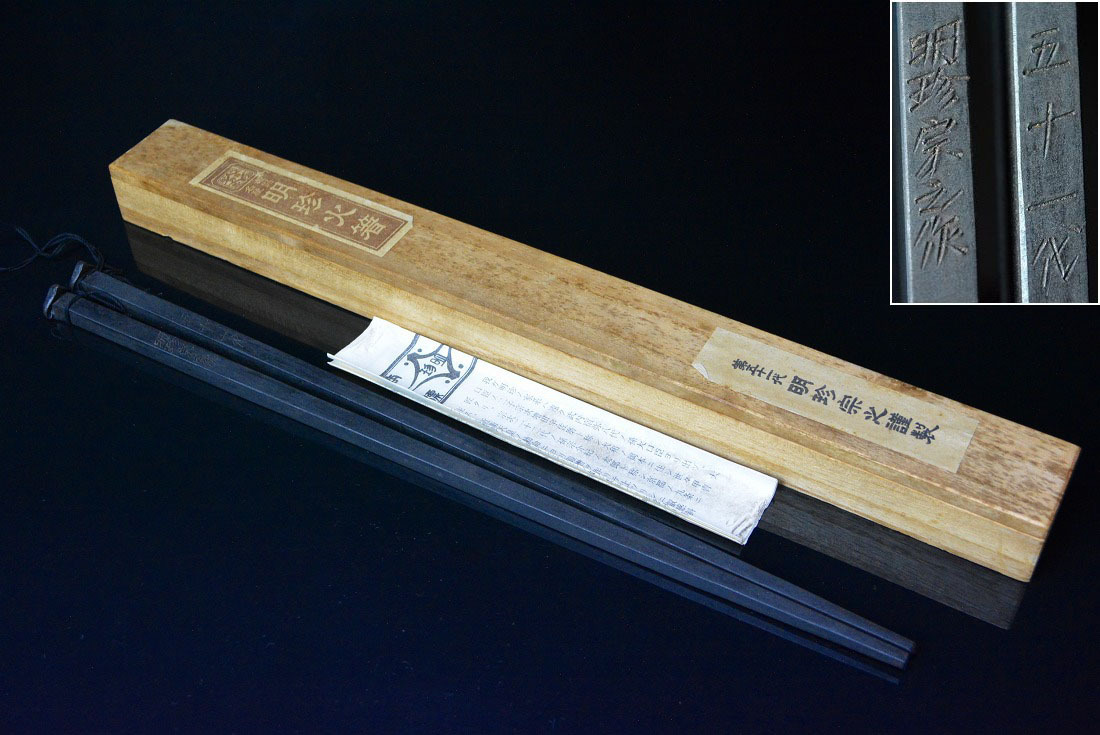 【五十一代 明珍宗之造】大振り鍛鉄火箸 36.5cm/333g 共箱 栞付 茶道具 拍卖