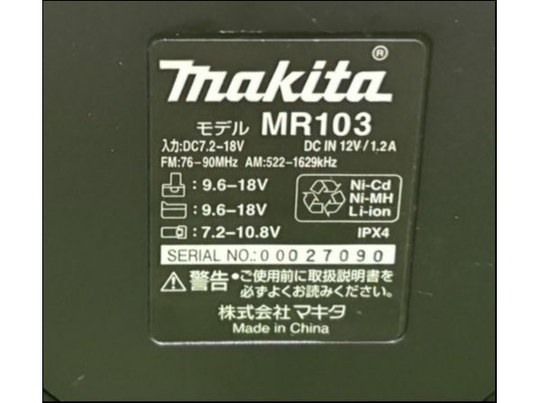 - 富)動画有★makia マキタ 充電式ラジオ MR103 ※アダプター付き キャンプ 防災 アウトドア 現場 領収OK/直引取可 h1024-2-5-3b