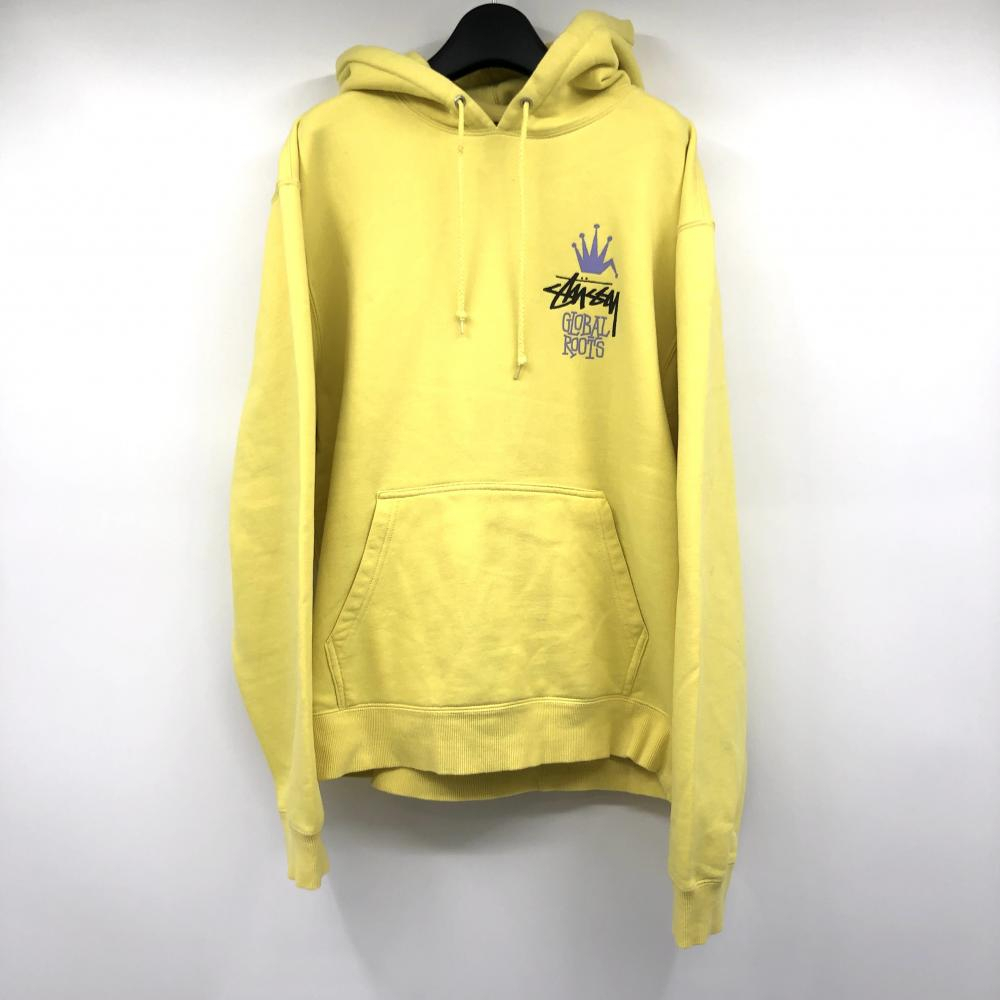 - 【中古】STUSSY Global Roots Hood サイズL イエロー パーカー ステューシー[240017654101]