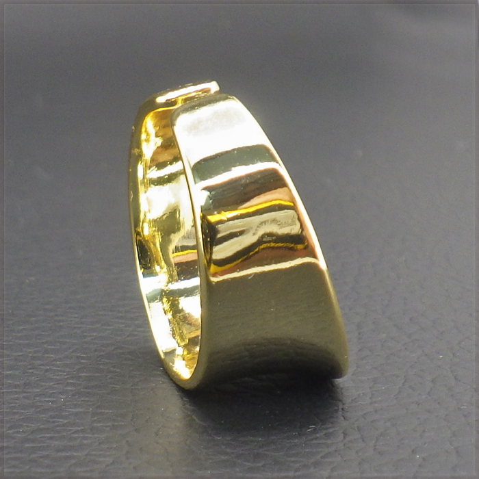 > [RING] Yellow Gold Plated スムース 斜めカット デザイン C形 オープン 指輪 イエロー ゴールド フリーサイズ リング 【送料無料】