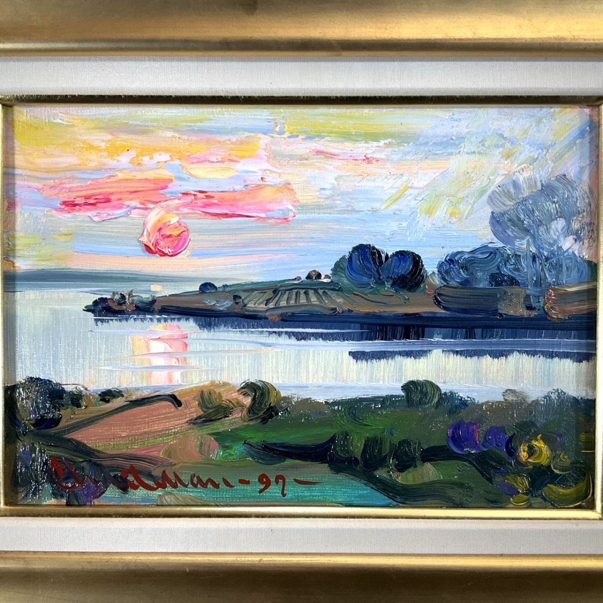 模写■油彩■作者不詳■『清平湖の朝』■雰囲気のある逸品■額付絵画