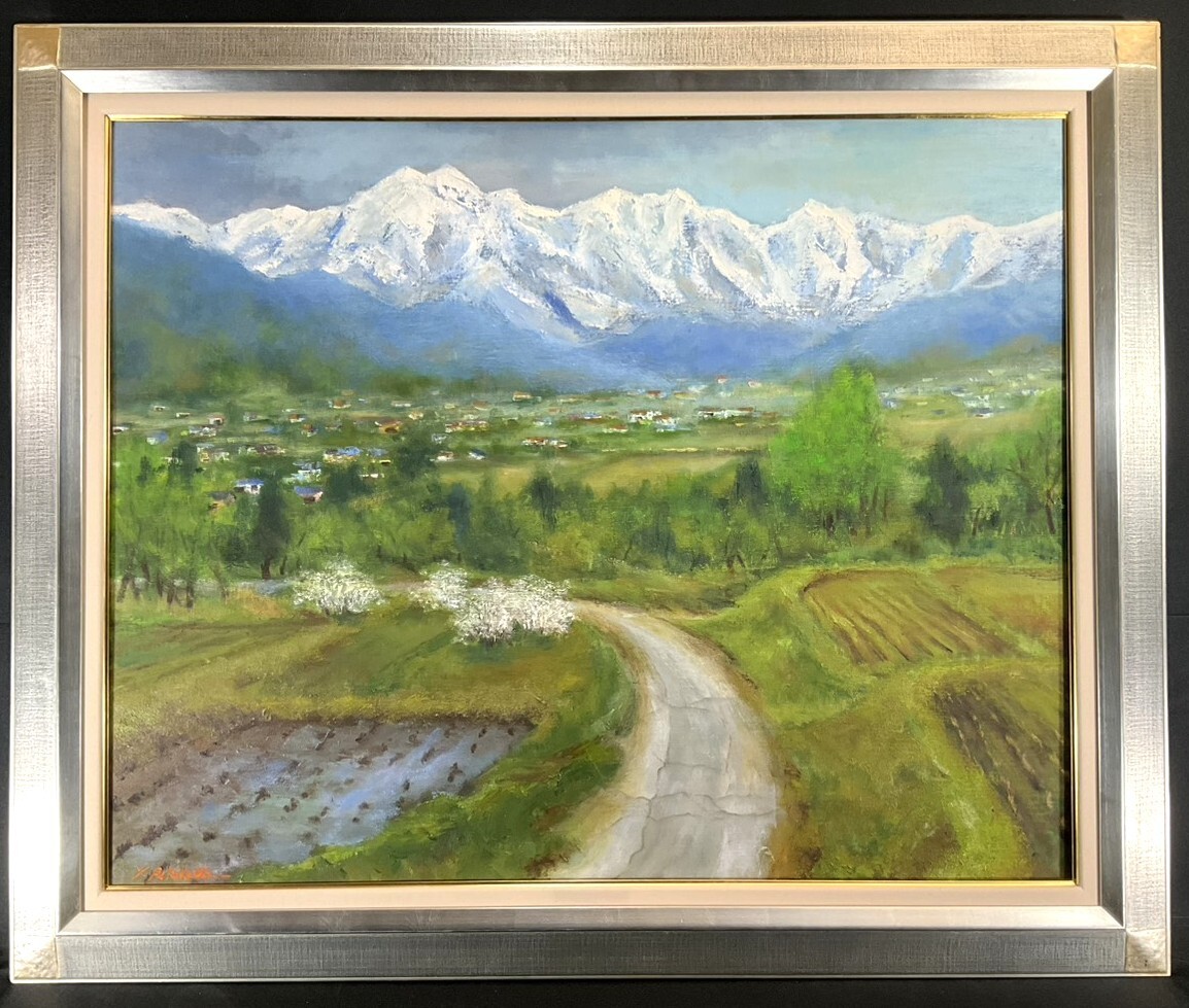 真作■油彩■古川洋一■『安曇野・早春』■30F大型・傑作■額付絵画
