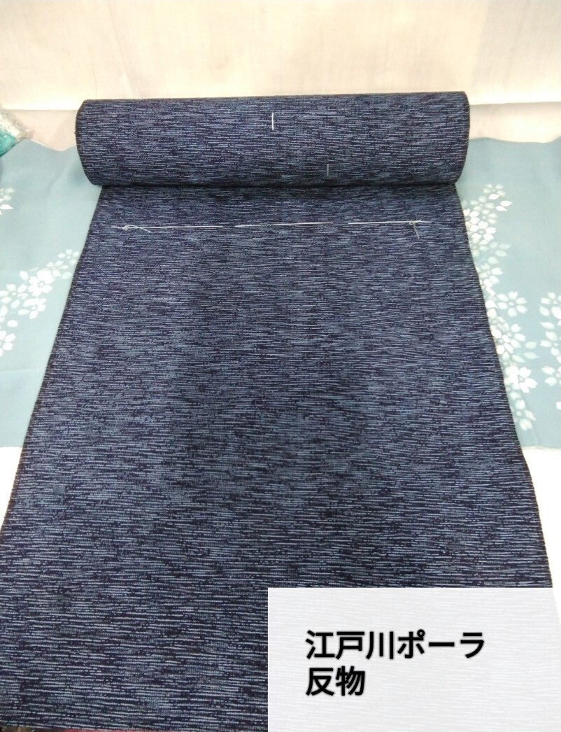 - g_t I284 [江戸川ポーラ反物] 藍地色 横縞柄 ポーラ反物 ポーラ素材反物は、絹とウールの混毛で、触るとシャリシャリで、サラサラ素材です