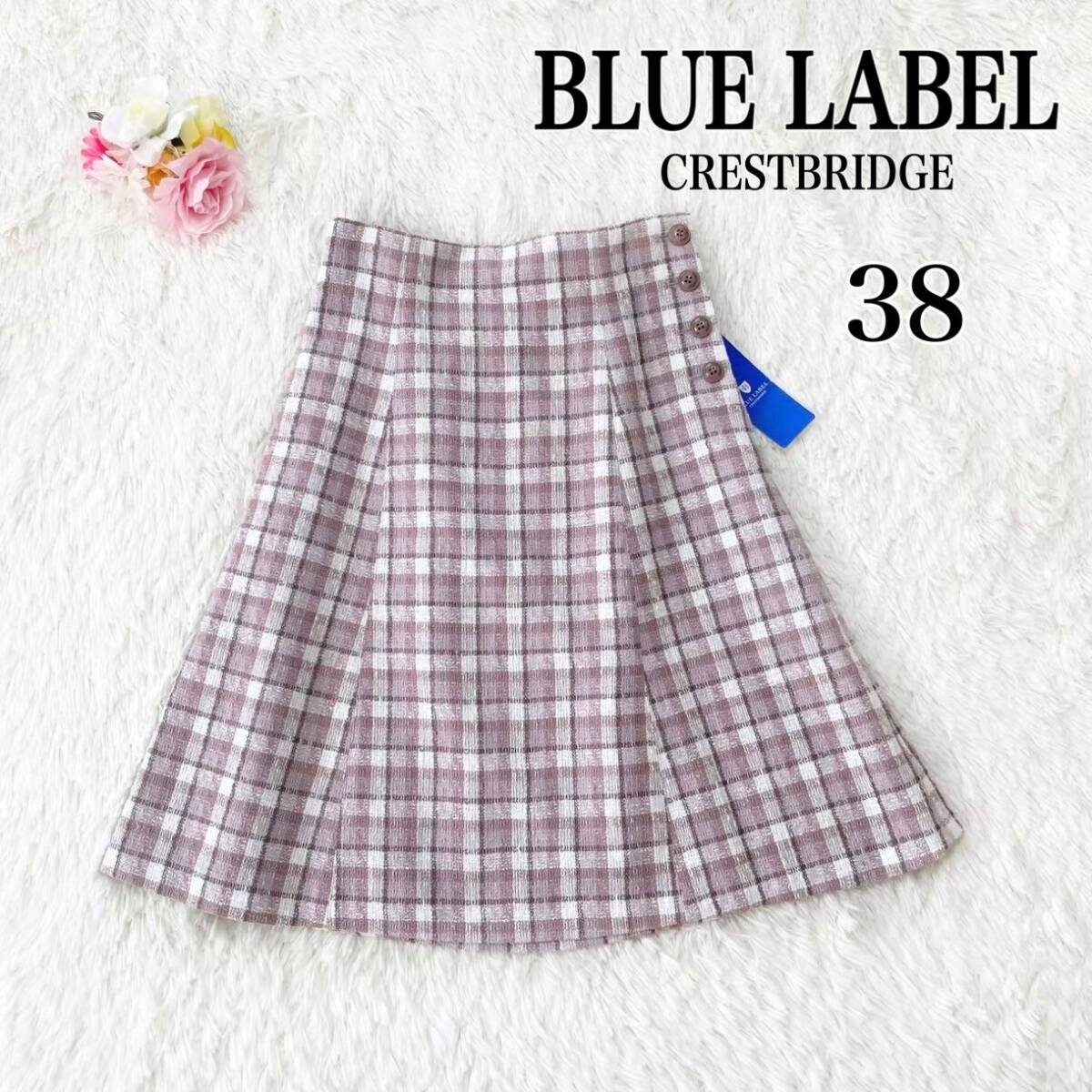 > ブルーレーベル クレストブリッジ チェック ファンシー リング ツイード フレア スカート 未使用 タグ付き ピンク 38 ひざ丈