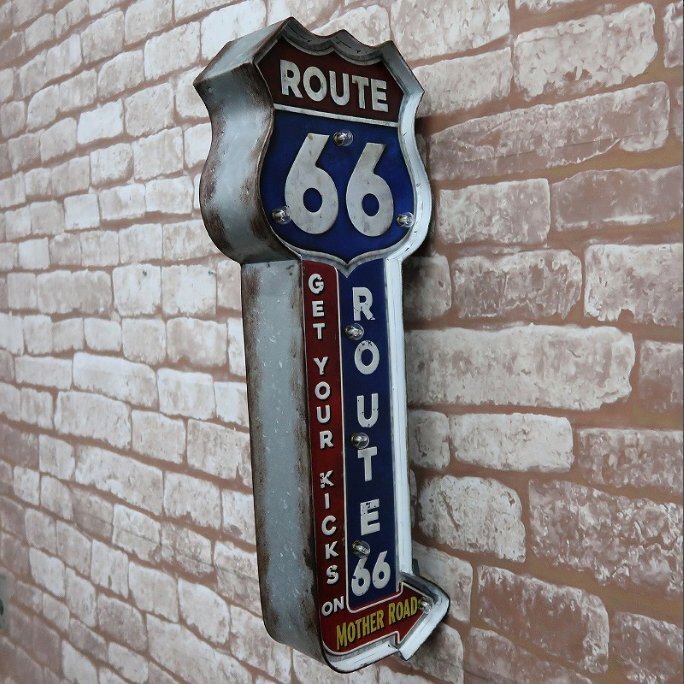 - アメリカン雑貨 立体看板 ウォールサイン ブリキ風 アメリカンレトロ アメリカ雑貨 電球付 インテリア ルート66 ROUTE66 BR-37