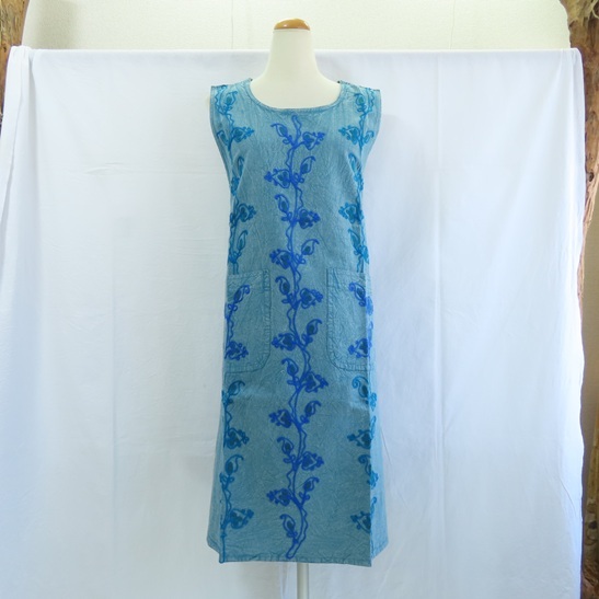 - 〓 新品 〓 エプロン ワンピース 〓 刺繍 エスニック アジアン インド綿 ドレス ガーデニング ウォッシュ加工 おしゃれ 〓A097