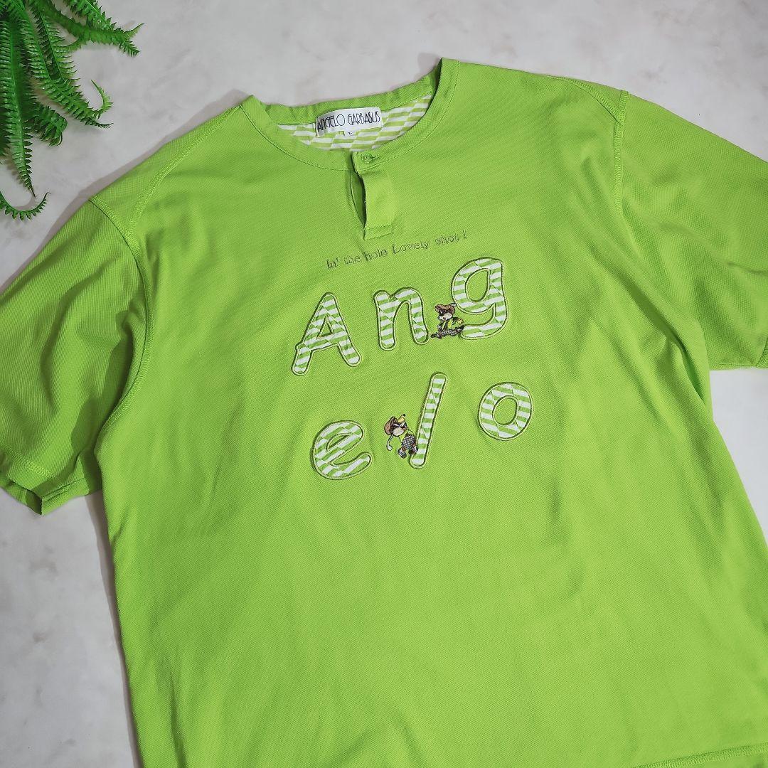 > ANGELO GARBASUS 刺繍デザイン・ポロシャツ生地Tシャツ 黄緑 ヘンリーネック ロックステッチ見せ68814