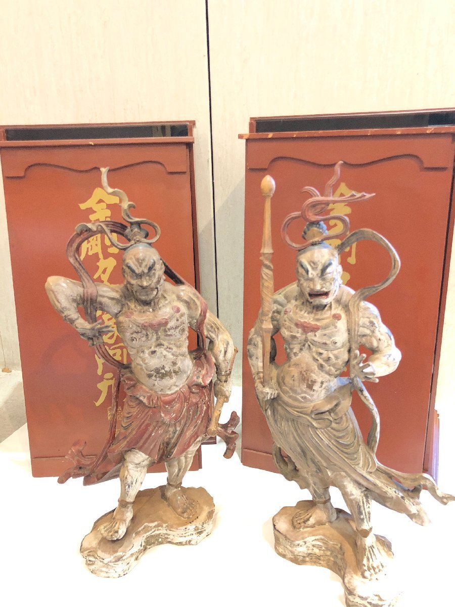 > ■■97■大迫力!!金剛力士像 阿形像・吽形像 別當東大 清水公照印 仏像 木箱 一対 阿吽像 高さ約55cm