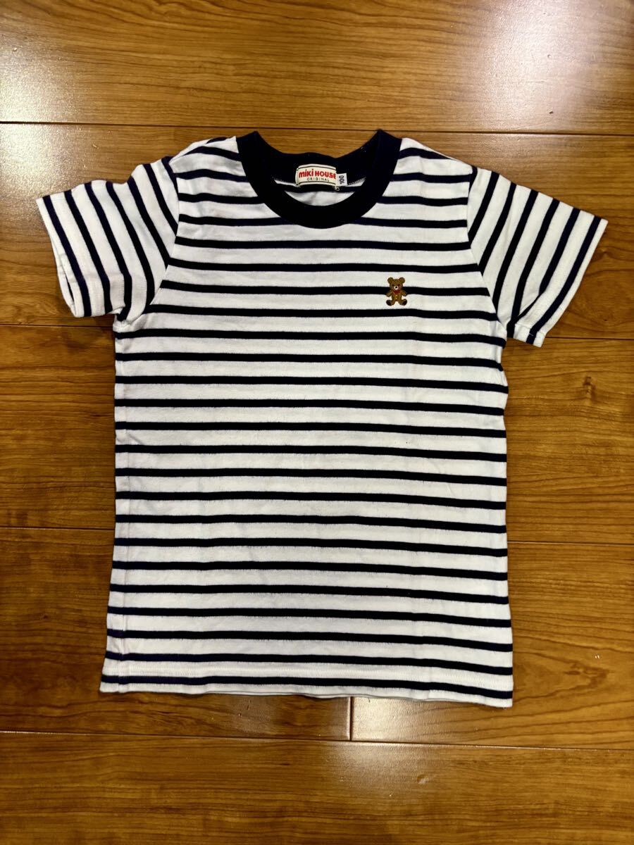 - 【送料無料】mikihouse ボーダー Tシャツ 半袖 ミキハウス ホワイト ネイビー 100サイズ