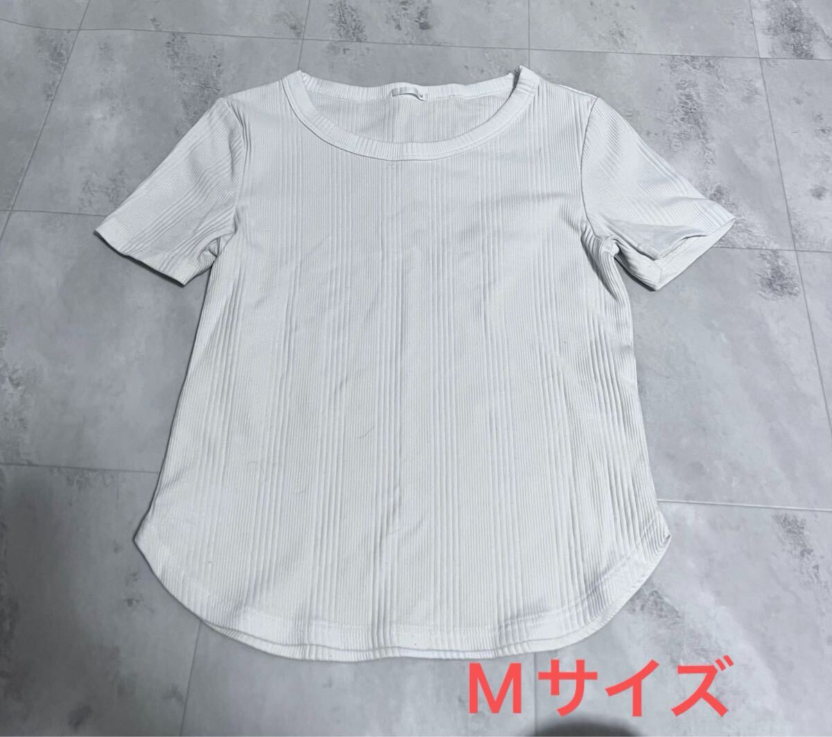 - 美品!GU ジーユー ランダムリブコンパクトT(半袖) ホワイト Mサイズ 無地