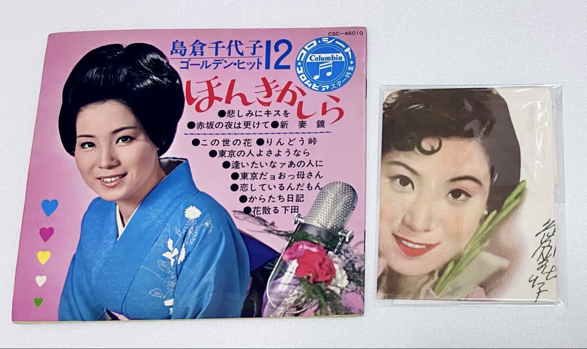- レア ソノシート 島倉千代子 ほんきかしら/悲しみにキスを/赤坂の夜は更けて/東京の人さようなら 他 昭和レトロ サインハンカチ付 j