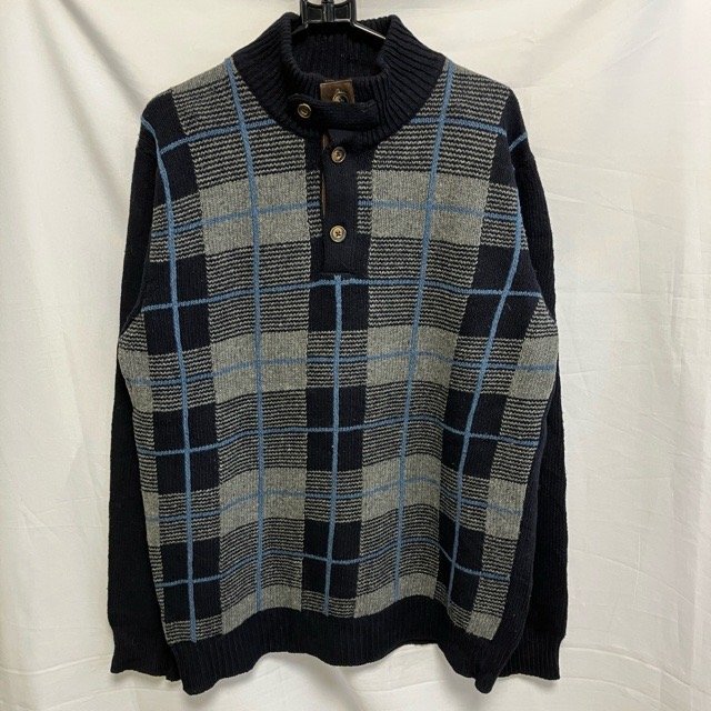 - A641 マッシモデュッティ M ユーロ古着 イタリア製 ウール混 長袖 チェック ニット ネイビー Massimo Dutti メンズ