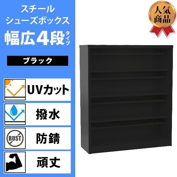 - 送料無料 ロッカー おしゃれ スチール シューズボックス 16人用 幅広4段タイプ オープンタイプ 黒 棚板付き 扉なし 1列4段 UVカット 撥水