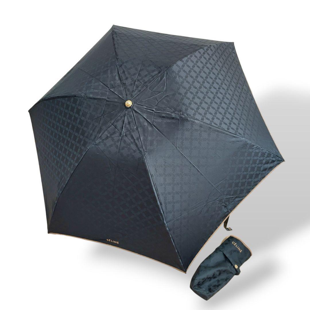 > 【大人気】セリーヌ CELINE 折り畳み傘 ブラック 刺繍 袋付き 良品 トレオンフ 日傘 雨傘 良品