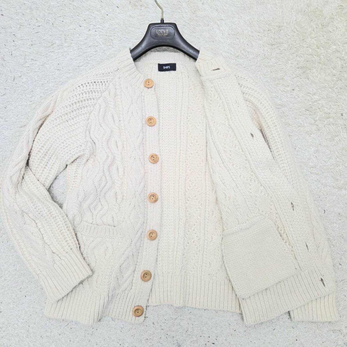 - シップス【特別な風格】SHIPS ジャケット カーディガン 3Dニット 羽織 アウター ウール ケーブル編み 厚手 ウッドボタン オフホワイト S