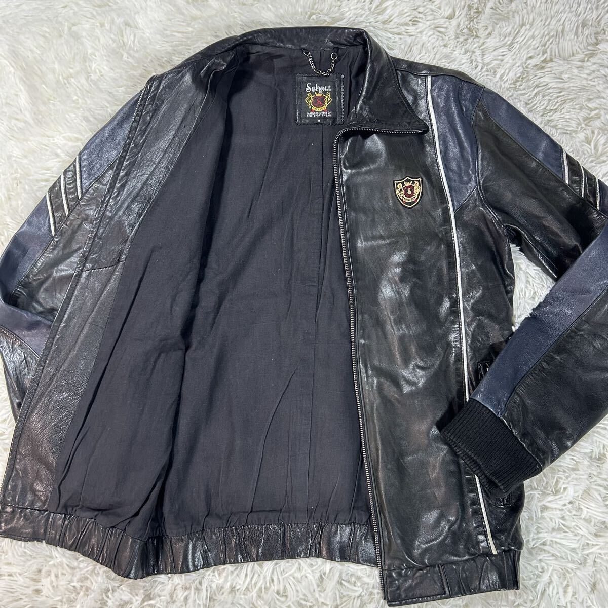 - ★美品★SOHOTT ショット ラムレザー M 切替 ジャケット ライダース シングル ブラック 黒 羊革 バイカー