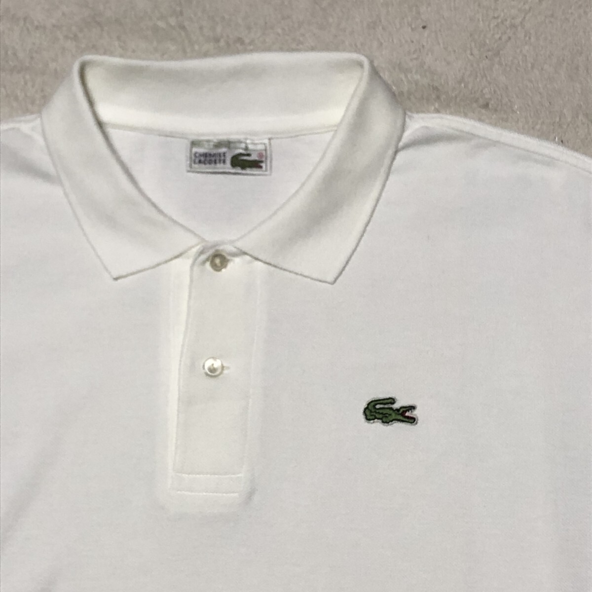 - CHEMISE LACOSTE シュミーズラコステ 半袖ポロシャツ 鹿の子 ワニロゴ刺 白 人気の大きいサイズ 5サイズ Lサイズ