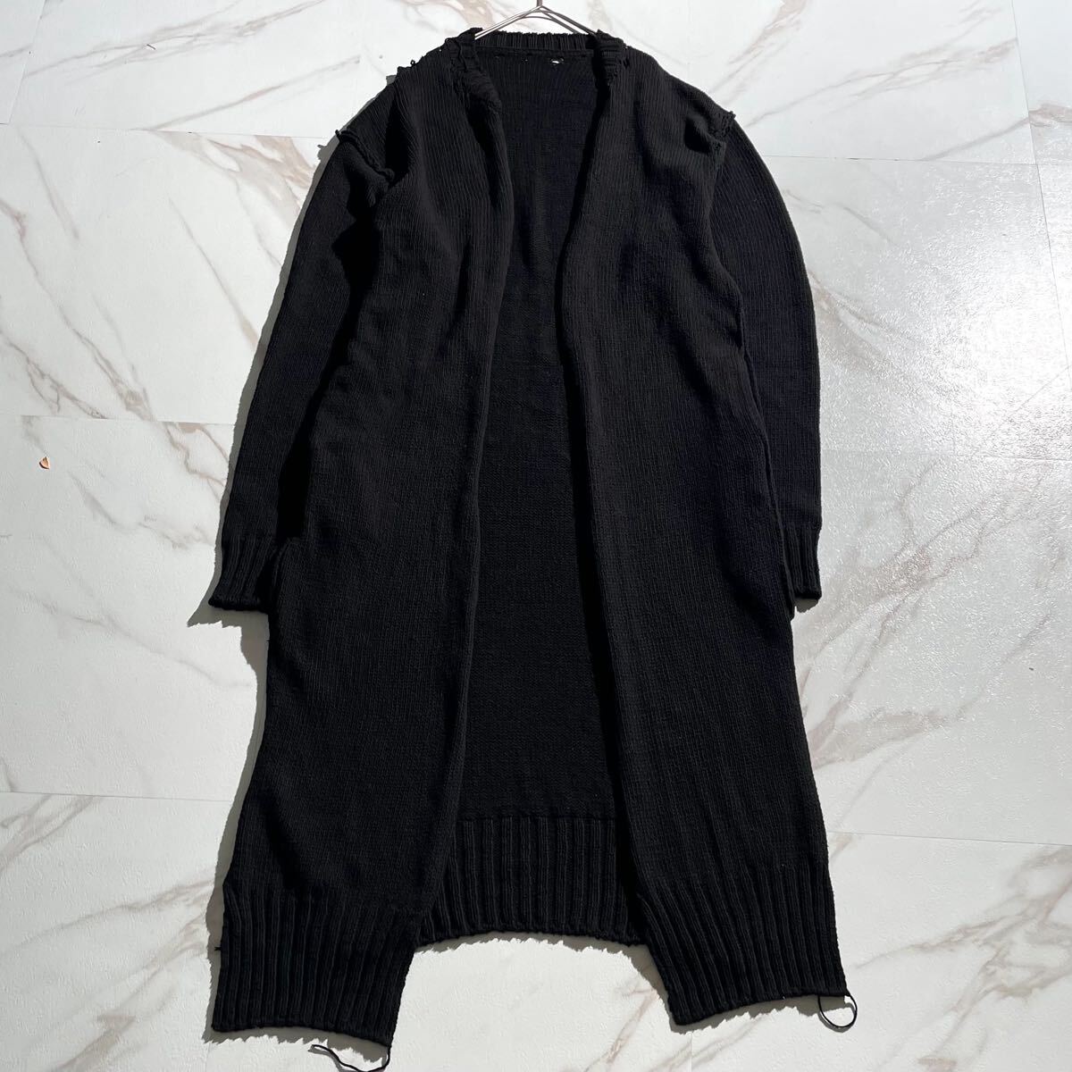 > 未使用に近い 21SS◆Y's ワイズ オーバーサイズコート ロングカーディガン ダメージ加工 L相当 ブラック コットン メンズ ヨウジヤマモト