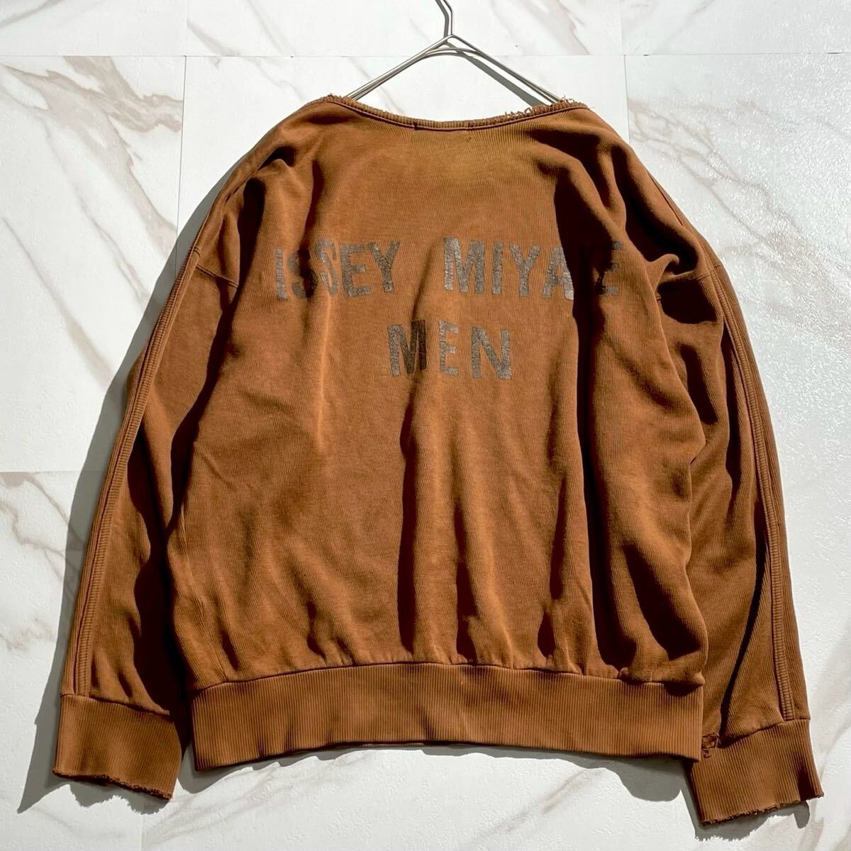 > 美品 筆タグ◆ISSEY MIYAKE MEN ダメージ加工 ブランドロゴ プリント スウェット トレーナー 筆タグ 80s 名作 archive イッセイミヤケメン