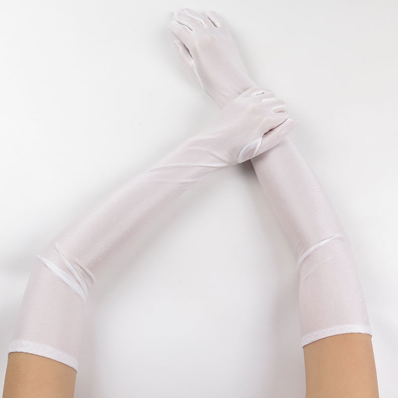 - 124047半光沢ロング手袋サテン系素材日焼け防止パーティー向けホワイト