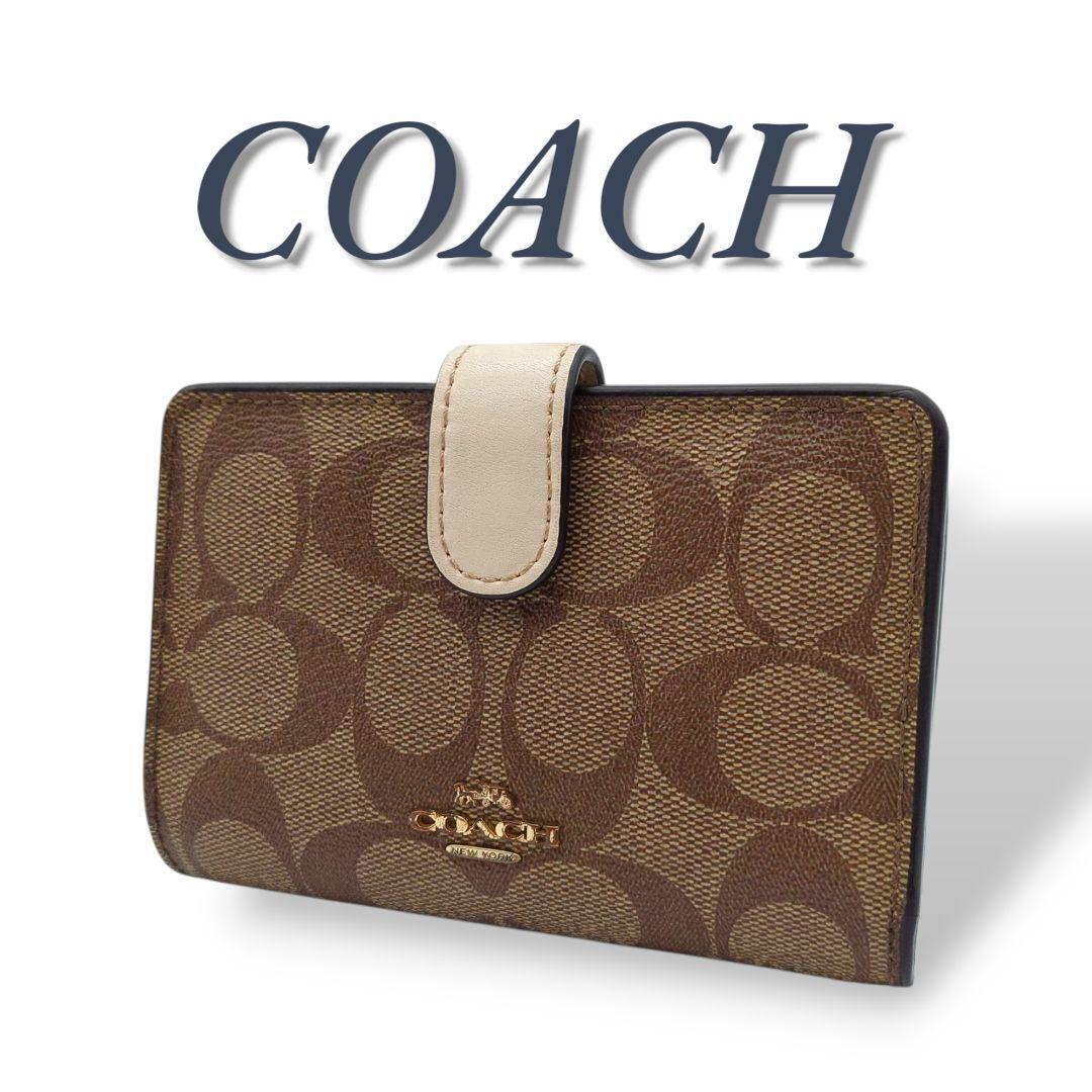 - 【大人気】COACH コーチ 折り財布 PVC レザー ブラウン系 良品 シグネチャー 大人気モデル 希少 カード入れ8つ
